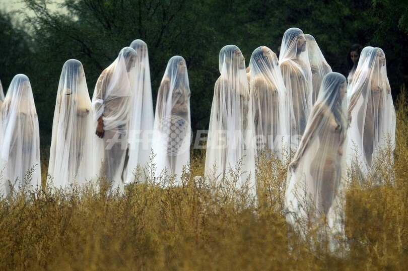 写真は、ヌード姿でポーズを取るボランティアの男女(2012年11月4日撮影)。(c)AFP/Alfredo Estrella