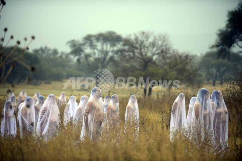 写真は、ヌード姿でポーズを取るボランティアの男女(2012年11月4日撮影)。(c)AFP/Alfredo Estrella
