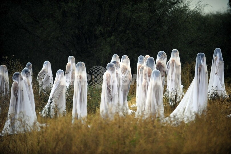 メキシコ中部グアナフアト(Guanajuato)州で4日、集団ヌード写真で知られる米写真家のスペンサー・チュニック(Spencer Tunick)氏による撮影が行われた。チュニック氏は、「死者の日(Day of the Dead)」の撮影のためだけに日帰りでメキシコを訪れた。