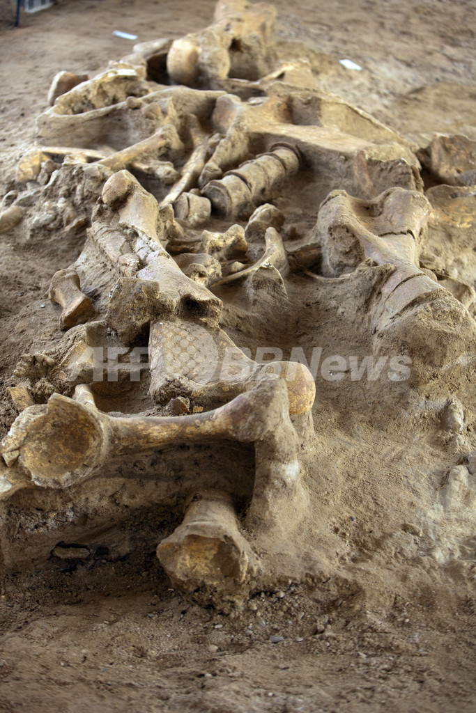 20万~50万年前に生息していたとみられるこのマンモスの骨は今年7月、パリ北東にあるシャン・シュル・マルヌ(Changis-sur-Marne)で発見された。死んだ時の年齢は20~30歳と考えられ、骨盤が完全に残っていたほか、大腿骨、顎骨(がっこつ)、脊椎骨4つなどが確認された。