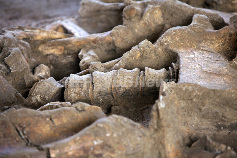 20万~50万年前に生息していたとみられるこのマンモスの骨は今年7月、パリ北東にあるシャン・シュル・マルヌ(Changis-sur-Marne)で発見された。死んだ時の年齢は20~30歳と考えられ、骨盤が完全に残っていたほか、大腿骨、顎骨(がっこつ)、脊椎骨4つなどが確認された。