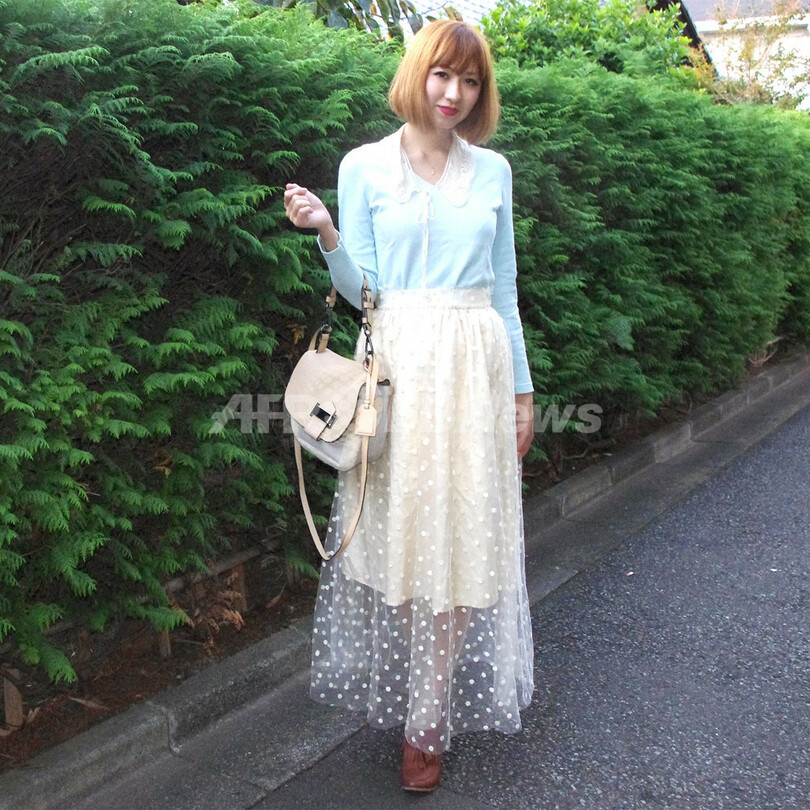 渋谷で購入したニットレース素材のつけ襟は、なんと300円!マカロンカラーのニットにあわせてとことんガーリーにコーディネート。華奢なゴールドネックレスとの相性も抜群です。