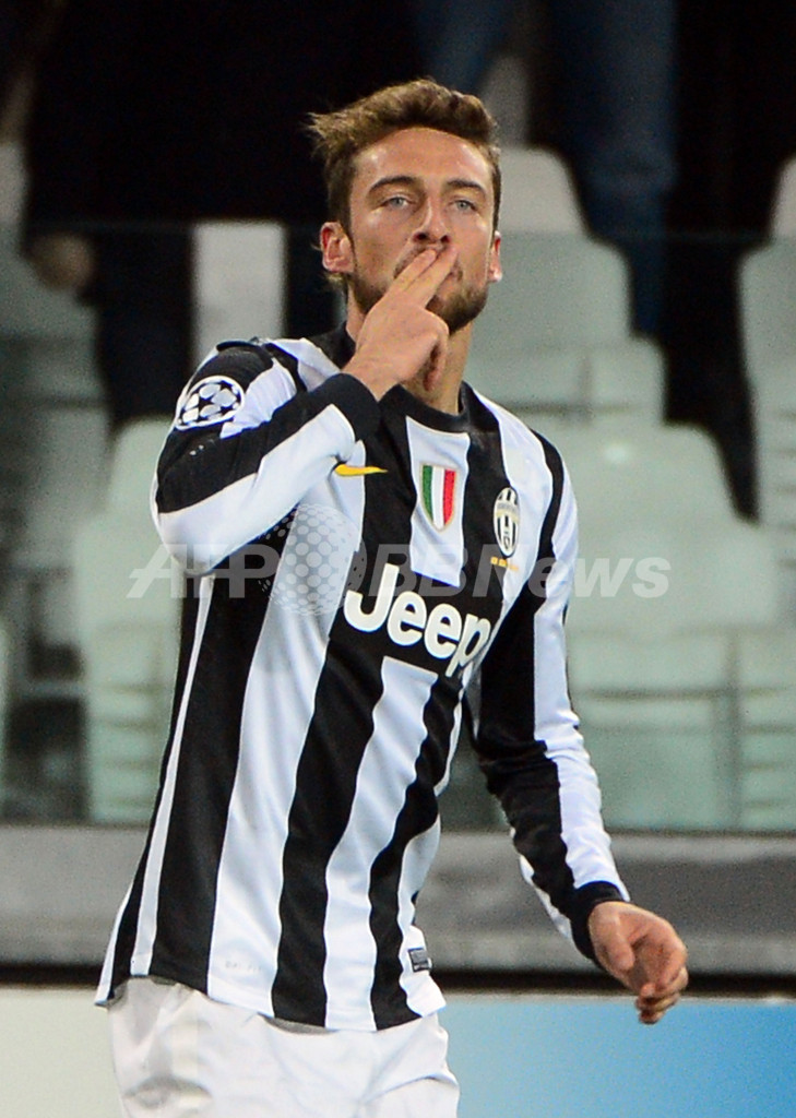 前半6分に先制点を決めて喜ぶクラウディオ・マルキジオ(Claudio Marchisio、2012年11月7日撮影)。(c)AFP/OLIVIER MORIN