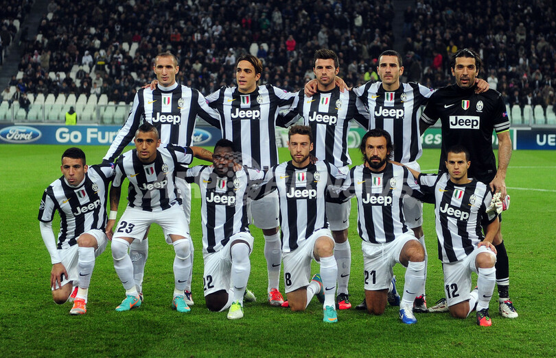 試合前の写真撮影に臨むユベントスの選手(2012年11月7日撮影)。(c)AFP/OLIVIER MORIN