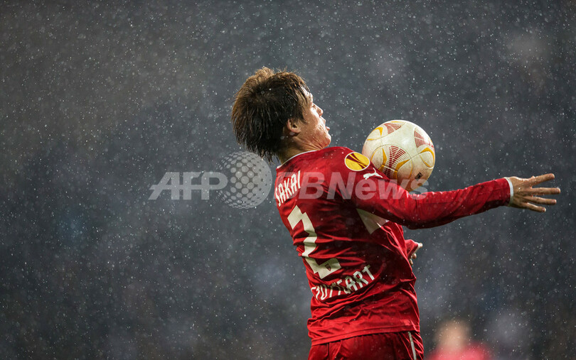 ボールをコントロールするVfBシュツットガルトの酒井高徳(Gotoku Sakai、2012年11月8日撮影)。(c)AFP/ANDREAS HILLERGREN