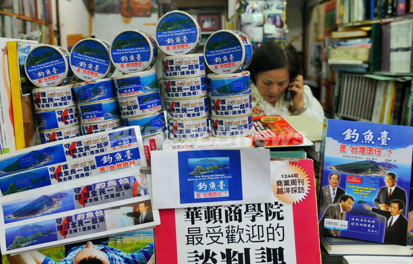 【11月8日 AFP】台湾の書店では、このほど発売された尖閣諸島(Senkaku Islands、台湾名:釣魚台、Diaoyutai)の領有権を主張する新刊書と一緒に、魚の缶詰が並べられている。