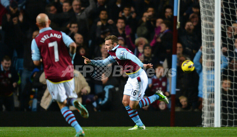 得点を決め歓喜するアストン・ビラのアンドレアス・ヴァイマン(Andreas Weimann、2012年11月10日撮影)。(c)AFP/ANDREW YATES
