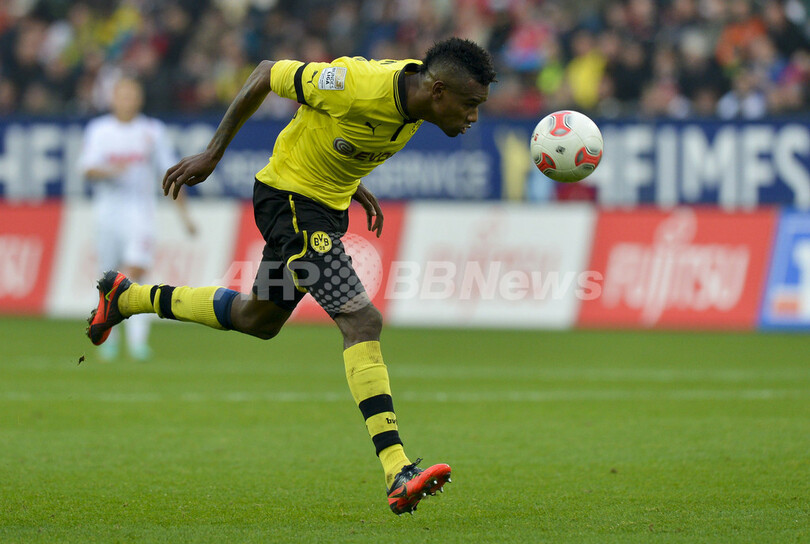 ボールをコントロールするボルシア・ドルトムントのフェリピ・サンターナ(Felipe Augusto Santana、2012年11月10日撮影)。(c)AFP/GUENTER SCHIFFMANN