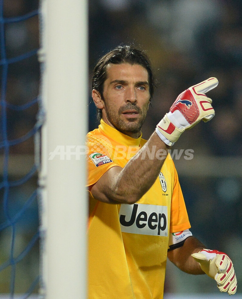 試合に臨むユベントスのジャンルイジ・ブッフォン(Gianluigi Buffon、2012年11月10日撮影)。(c)AFP/ALBERTO PIZZOLI