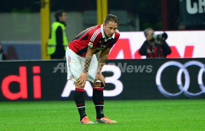 落胆した様子を見せるACミランのフィリップ・メクセス(Philippe Mexes、2012年11月11日撮影)。(c)AFP/OLIVIER MORIN