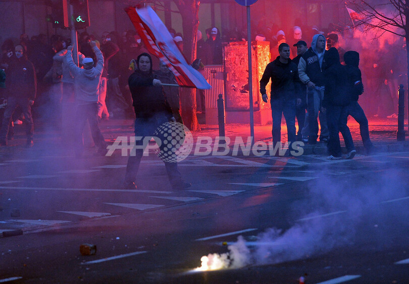 ニュース 政治・経済 ポーランド独立記念日、右派やフーリガンが機動隊と衝突 2012年11月12日 12:16 発信地:ワルシャワ/ポーランド [ ヨーロッパ ポーランド ] このニュースをシェア ‹ › ❮ 9/9 ❯ ポーランド独立記念日の11日、首都ワルシャワ(Warsaw)中心部を行進していた右派団体とフーリガンのデモ隊が花火を投げるなど暴徒化し、機動隊との衝突に発展した。ポーランドは第1次世界大戦後の1918年11月11日に独立国家の地位を回復。これを記念して、毎年この日には右派と左派の双方が行進を行っている(2012年11月11日撮影)。(c)AFP/JANEK SKARZYNSKI 画像作成中 ! 【11月12日 AFP】ポーランド独立記念日の11日、首都ワルシャワ(Warsaw)中心部を行進していた右派団体とフーリガンのデモ隊が花火を投げるなど暴徒化し、機動隊との衝突に発展した。ポーランドは第1次世界大戦後の1918年11月11日に独立国家の地位を回復。これを記念して、毎年この日には右派と左派の双方が行進を行っている。(c)AFP 政治・経済 一覧へ> メディア・報道関係・法人の方向け 写真・動画 購入のお問合せ>
