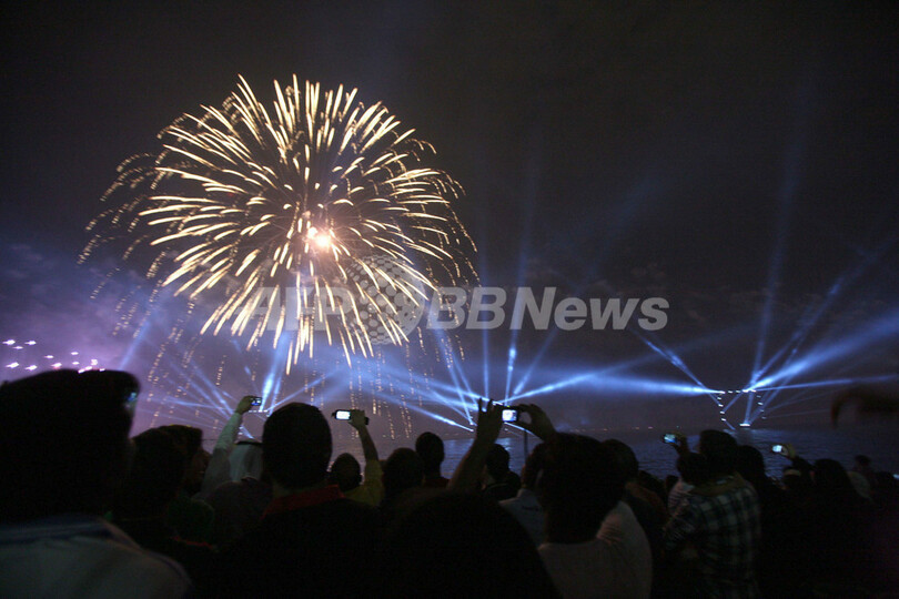 海沿いの道路を埋め尽くした数万人が見守る中、1500万ドル(約12億円)が投じられた花火とレーザー光線によるショーは、約1時間にわたり続いた。