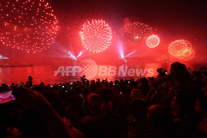 海沿いの道路を埋め尽くした数万人が見守る中、1500万ドル(約12億円)が投じられた花火とレーザー光線によるショーは、約1時間にわたり続いた。