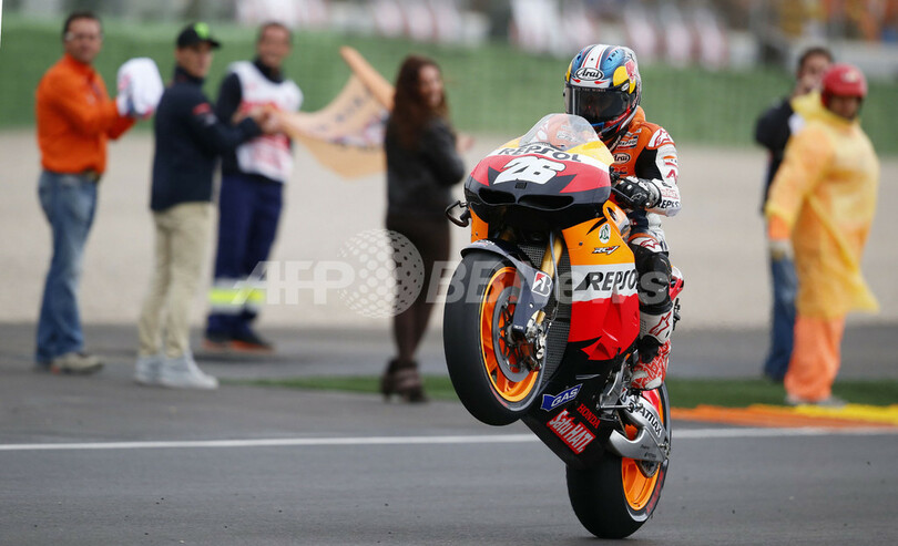 【11月12日 AFP】世界ロードレース選手権(WGP 2012)最終戦(第18戦)バレンシアGPは11日、スペインのバレンシア・サーキット(Circuit de la Comunitat Valenciana Ricardo Tormo)でMotoGPクラス決勝が行われ、レプソル・ホンダ(Repsol Honda)のダニ・ペドロサ(Dani Pedrosa、スペイン)が48分23秒819で優勝を飾った。