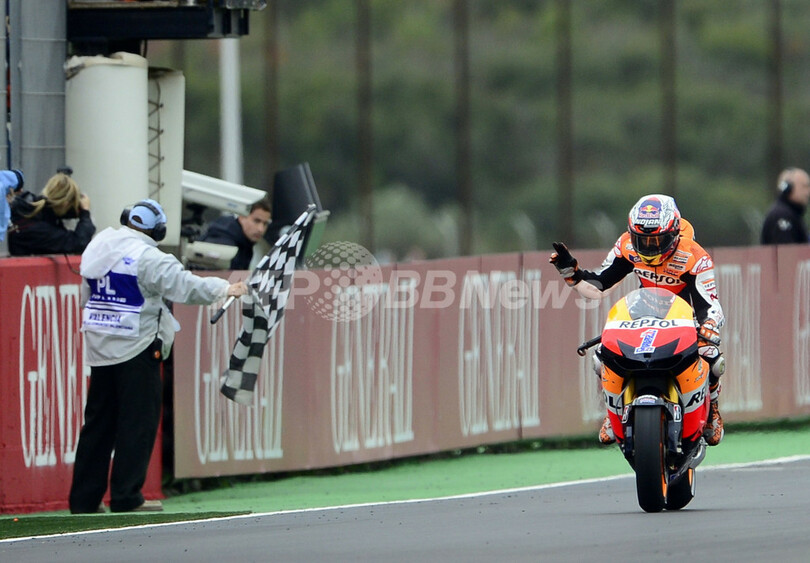 【11月12日 AFP】世界ロードレース選手権(WGP 2012)最終戦(第18戦)バレンシアGPは11日、スペインのバレンシア・サーキット(Circuit de la Comunitat Valenciana Ricardo Tormo)でMotoGPクラス決勝が行われ、レプソル・ホンダ(Repsol Honda)のダニ・ペドロサ(Dani Pedrosa、スペイン)が48分23秒819で優勝を飾った。