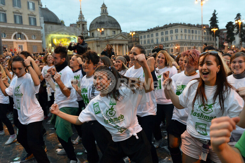 【11月12日 AFP】イタリア・ローマ(Rome)のポポロ広場(Piazza del Popolo)で10日、韓国のラップミュージシャンPSY(サイ)の「江南スタイル(Gangnam Style)」を大勢で踊る突発イベントがあり、10代を中心におよそ5000人が集まった。
