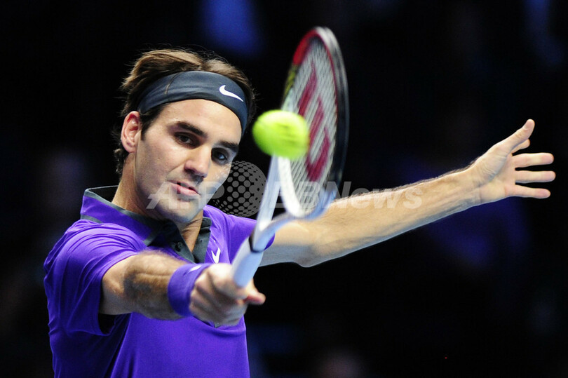 リターンを打つロジャー・フェデラー(2012年11月12日撮影)。(c)AFP/GLYN KIRK