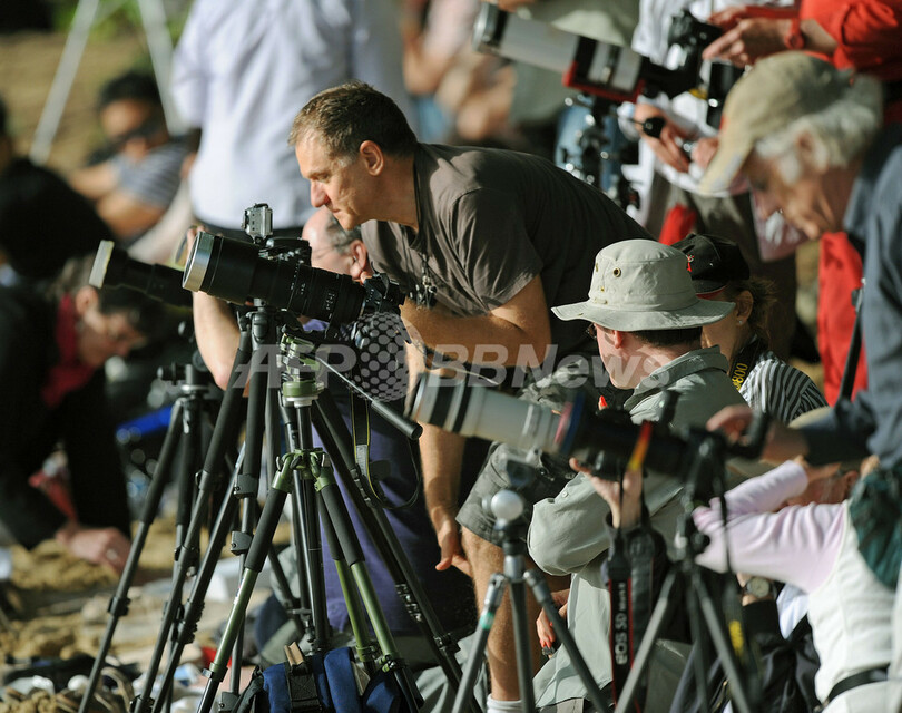 ニュース 環境・科学 豪北部の皆既日食、多くの人でにぎわうビーチ 2012年11月14日 18:30 発信地:パームコーブ/オーストラリア [ アジア・オセアニア オーストラリア ] このニュースをシェア ‹ › ❮ 2/9 ❯ オーストラリア北部のクイーンズランド(Queensland)州パームコーブ(Palm Cove)で14日、太陽が完全に月の影にさえぎられて見える皆既日食が観測された。この地域でおよそ1300年ぶりとなる約2分間の天体ショーを見るため、多くの人が詰めかけた。写真は、皆既日食に向けて準備するカメラマンたち(2012年11月14日撮影)。(c)AFP/Greg WOOD 画像作成中 ! 【11月14日 AFP】オーストラリア北部のクイーンズランド(Queensland)州パームコーブ(Palm Cove)で14日、太陽が完全に月の影にさえぎられて見える皆既日食が観測された。この地域でおよそ1300年ぶりとなる約2分間の天体ショーを見るため、多くの人が詰めかけた。(c)AFP 環境・科学 一覧へ> メディア・報道関係・法人の方向け 写真・動画 購入のお問合せ>