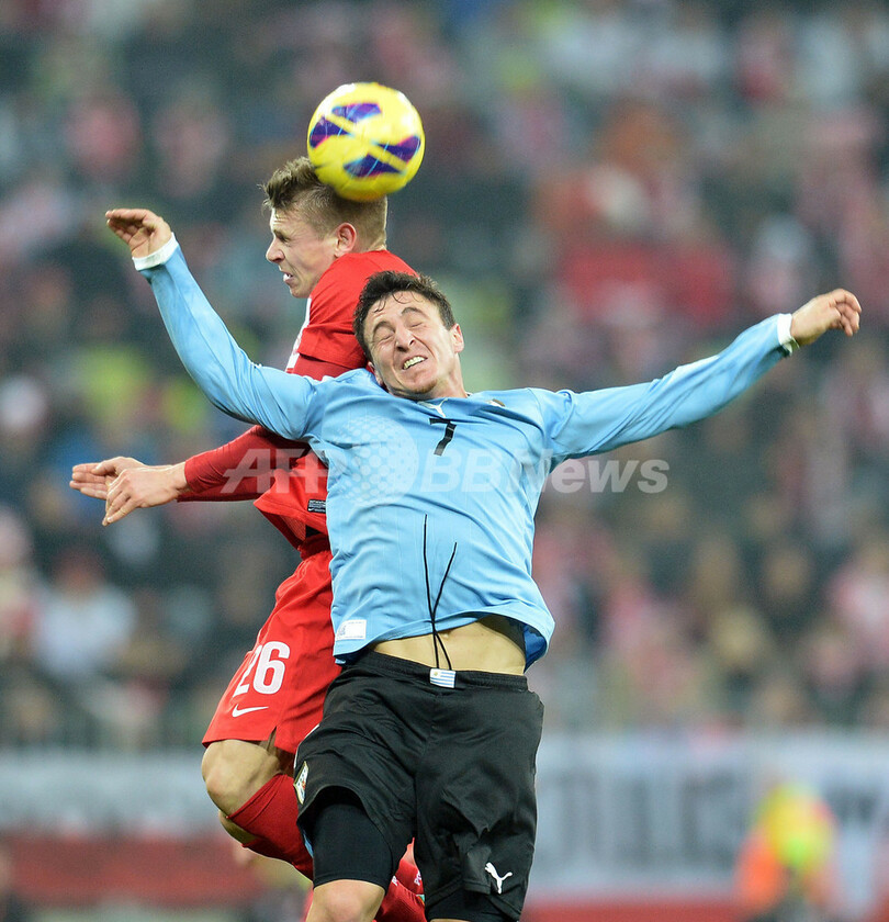 スポーツ サッカー ウルグアイがポーランドに勝利、サッカー国際親善試合 2012年11月15日 15:40 発信地:グダニスク/ポーランド [ ヨーロッパ ポーランド ] このニュースをシェア ‹ › ❮ 9/10 ❯ サッカー国際親善試合は14日、各地で行われ、ウルグアイは3-1でポーランドに勝利した。ポーランドのルカシュ・ピズチェク(Lukasz Piszczek、後)とボールを競るウルグアイのクリスチャン・ロドリゲス(Cristian Rodriguez、2012年11月14日撮影)。(c)AFP/JANEK SKARZYNSKI 画像作成中 ! 【11月15日 AFP】サッカー国際親善試合は14日、各地で行われ、ウルグアイは3-1でポーランドに勝利した。(c)AFP サッカー 一覧へ> メディア・報道関係・法人の方向け 写真・動画 購入のお問合せ>