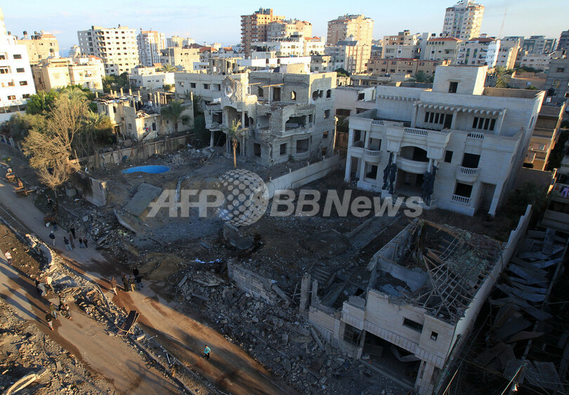 写真はガザ地区ガザ市(Gaza City)で、イスラエル軍の空爆で建物が破壊された地区(2012年11月15日撮影)。(c)AFP/MAHMUD HAMS