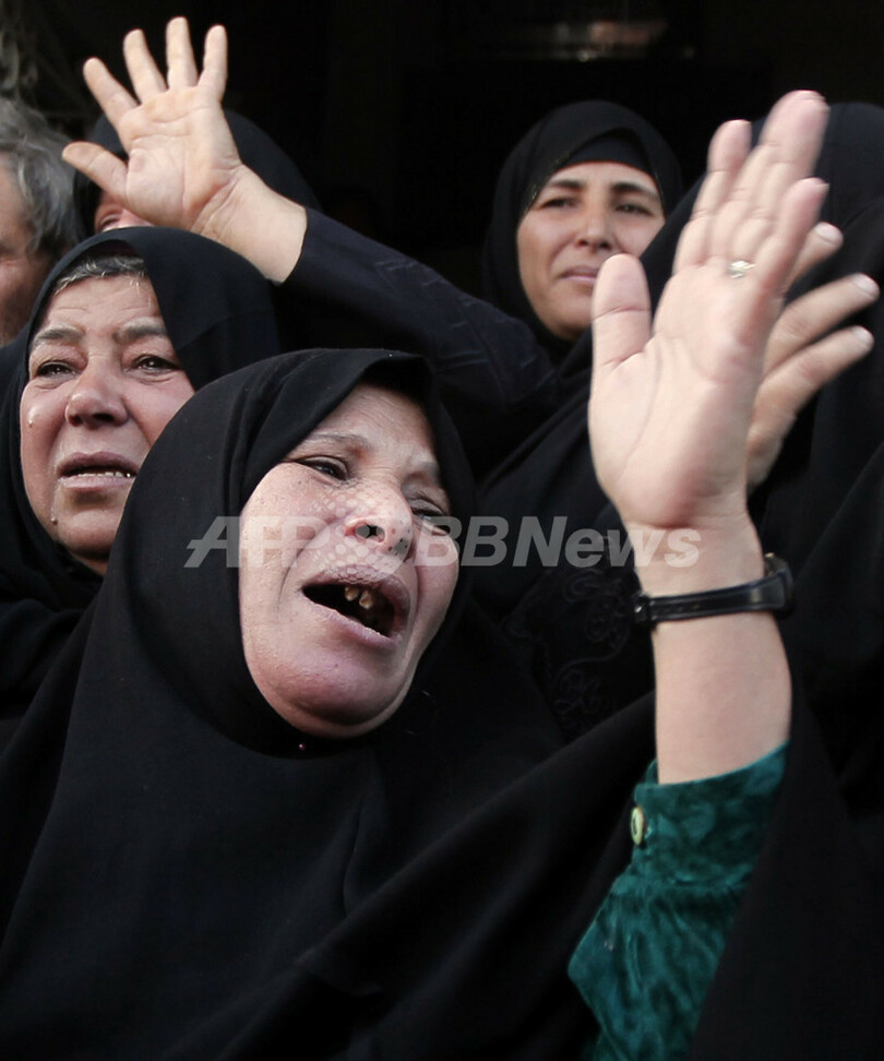 写真は、ガザ地区Khan Younisで、空爆で親族が死亡したため嘆き悲しむ人々(2012年11月15日撮影)。(c)AFP/SAID KHATIB HAMS