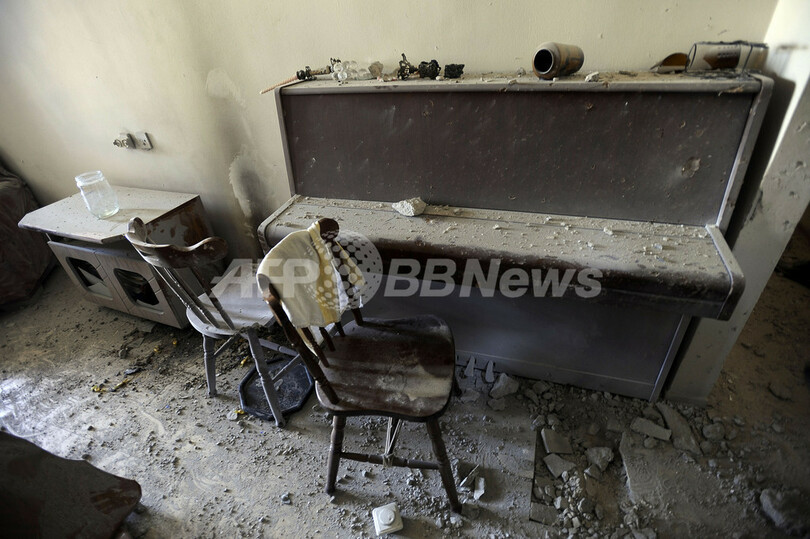 写真はイスラエル南部の沿岸都市アシュケロン(Ashkelon)で、ガザ地区からのロケット弾攻撃を受けた建物内のピアノ(2012年11月18日撮影)。(c)AFP/DAVID BUIMOVITCH