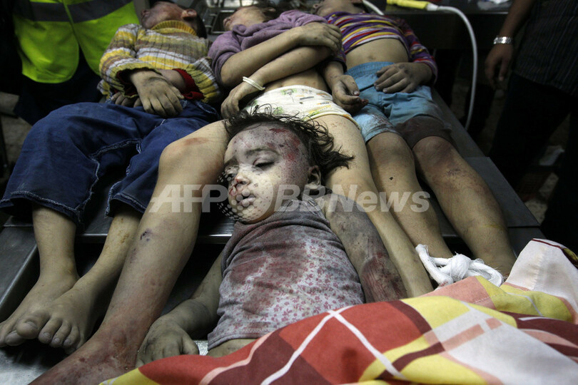 写真はガザ地区ガザ市(Gaza city)で、空爆で死亡した子どもたちの遺体(2012年11月18日撮影)。(c)AFP/MOHAMMED ABED