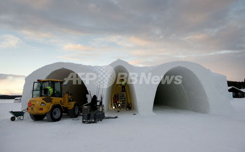 【11月19日 AFP】スウェーデン北部のラップランド(Lapland)地方に属するユッカスヤルビ(Jukkasjarvi)村には、文字通り氷でできたホテル「アイスホテル(ICEHOTEL)」がある。氷のゲストルームは毎年新しいデザインで作り直されるが、今年も冬季の営業に向けて建設が進行中。もちろん建設中も、ゲストの滞在中も、ゲストルーム内は氷が溶けない温度に保たれている。(c)AFP