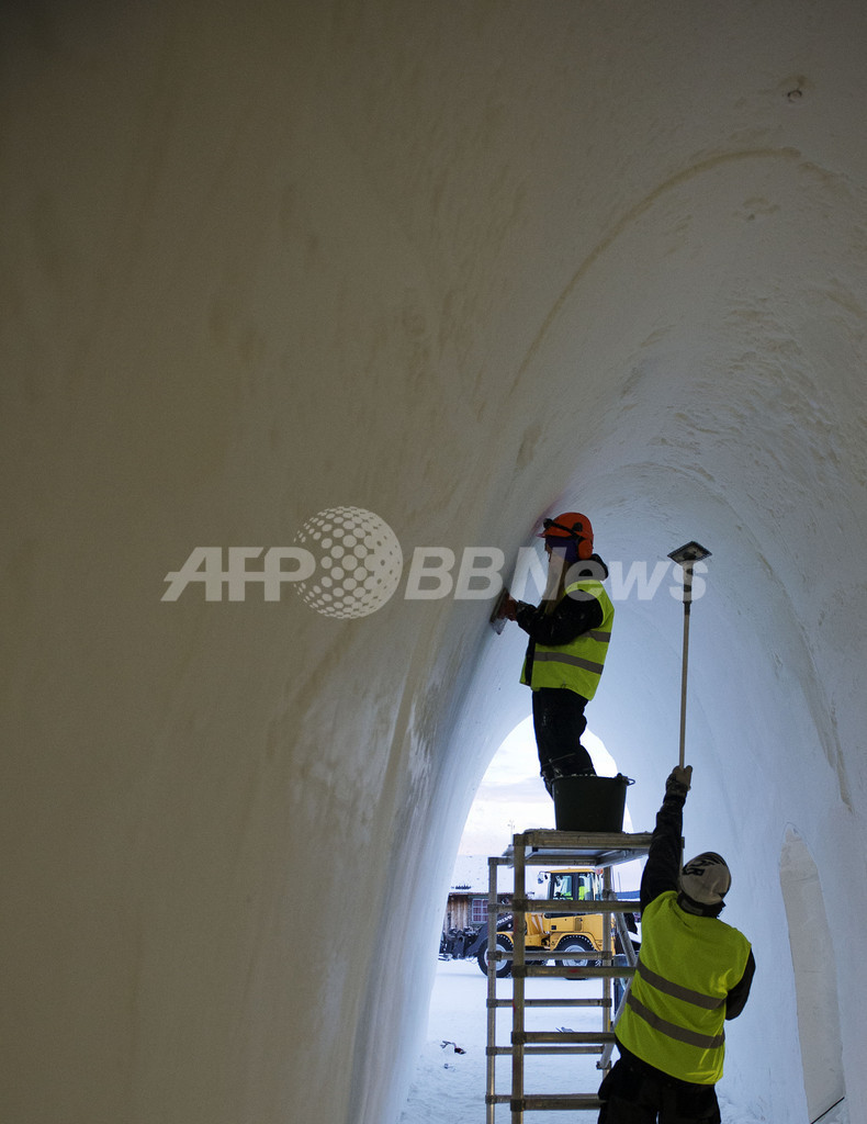 【11月19日 AFP】スウェーデン北部のラップランド(Lapland)地方に属するユッカスヤルビ(Jukkasjarvi)村には、文字通り氷でできたホテル「アイスホテル(ICEHOTEL)」がある。氷のゲストルームは毎年新しいデザインで作り直されるが、今年も冬季の営業に向けて建設が進行中。もちろん建設中も、ゲストの滞在中も、ゲストルーム内は氷が溶けない温度に保たれている。(c)AFP