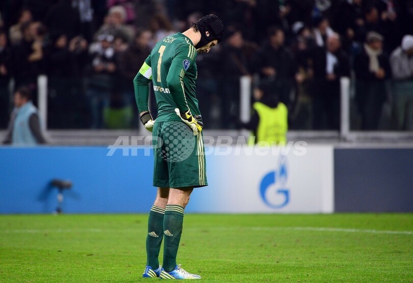 試合に敗れ落胆するチェルシーのGKペトル・チェフ(Petr Cech、2012年11月20日撮影)。(c)AFP/OLIVIER MORIN