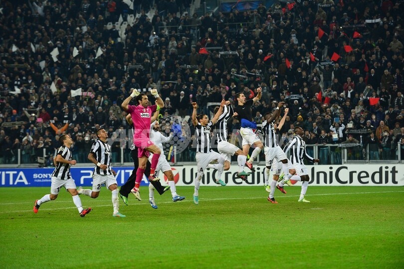 試合に勝利し歓喜するユベントスの選手(2012年11月20日撮影)。(c)AFP/GIUSEPPE CACACE