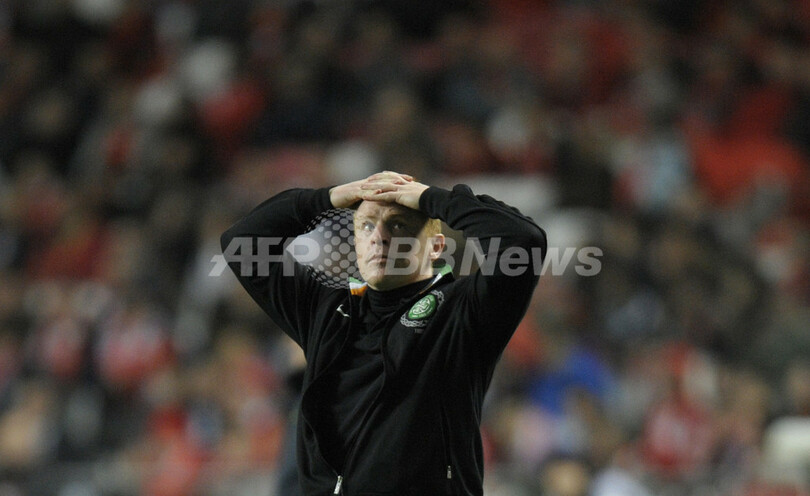 額に手を乗せ、落胆した様子を見せるセルティックのニール・レノン(Neil Lennon)監督(2012年11月20日撮影)。(c)AFP/MIGUEL RIOPA