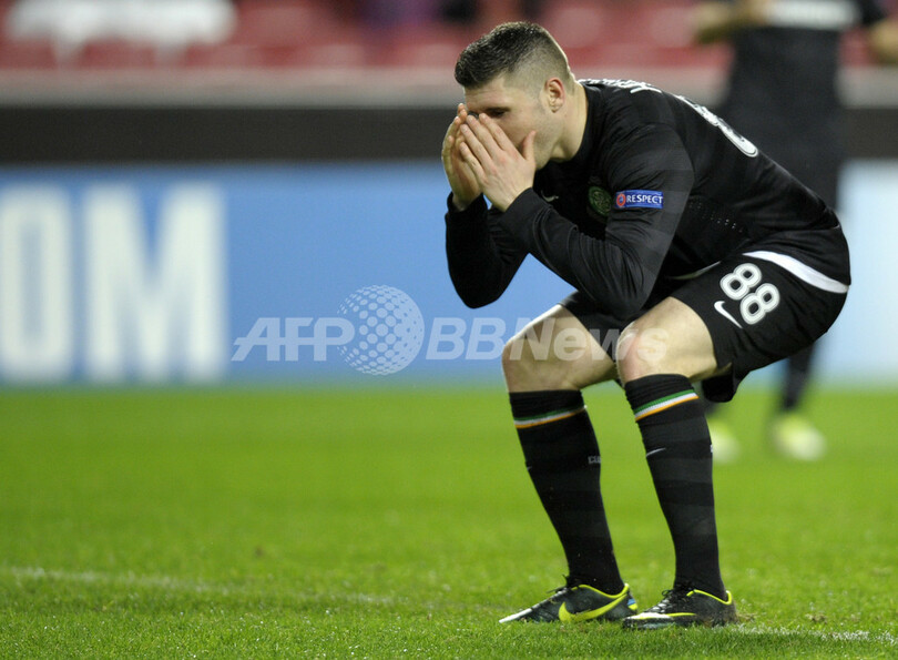 得点機を逃し落胆するセルティックのゲイリー・フーパー(Gary Hooper、2012年11月20日撮影)。(c)AFP/MIGUEL RIOPA