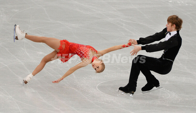 57.07点で4位につけたアナスタシヤ・マルチュシェワ(Anastasia Martiusheva)/アレクセイ・ロゴノフ(Alexei Rogonov)組(2012年11月24日撮影)。(c)AFP/Toru YAMANAKA