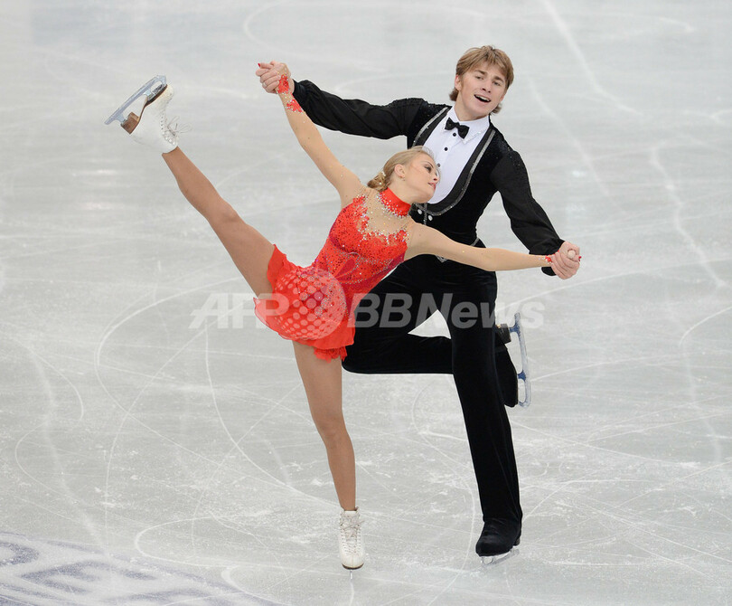 57.07点で4位につけたアナスタシヤ・マルチュシェワ(Anastasia Martiusheva)/アレクセイ・ロゴノフ(Alexei Rogonov)組(2012年11月24日撮影)。(c)AFP/Toru YAMANAKA