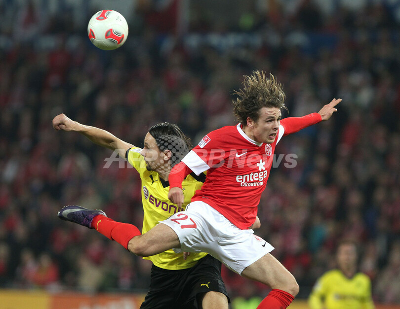 前半4分、マルコ・カリジウリ(Marco Caligiuri)のシュートでマインツに先制を許したドルトムントは、同11分にマルコ・ロイス(Marco Reus)がミドルシュートをゴール隅に突き刺して同点とした。さらにドルトムントは前半終了間際の43分にマリオ・ゲッツェ(Mario Goetze)からのボールをスペースに走り込んで受けたロベルト・レワンドフスキ(Robert Lewandowski)が、GKの頭上を越えるループシュートを決めて逆転勝利を挙げた。
