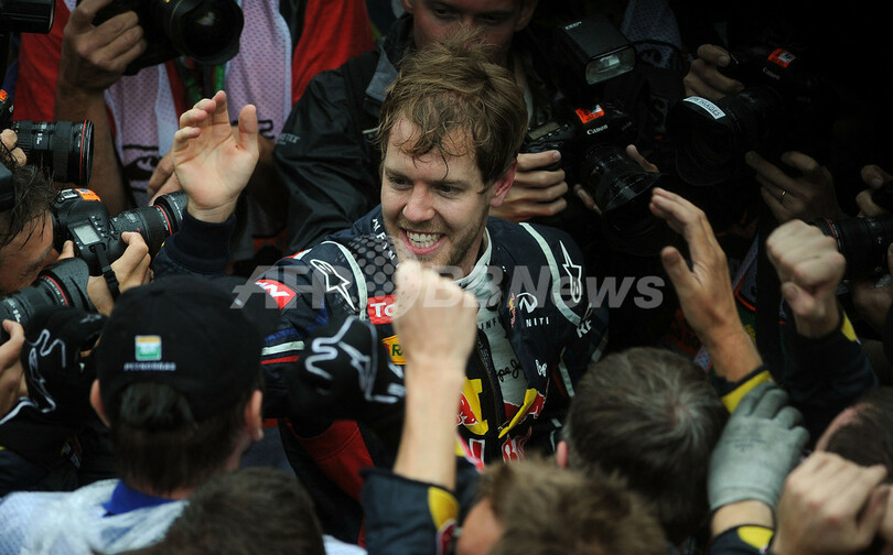 また、281ポイントで年間王者となったベッテル擁するレッドブルは、前週の第19戦米国GP(United States Grand Prix 2012)で3年連続となるコンストラクターズ選手権優勝を決めている。(c)AFP