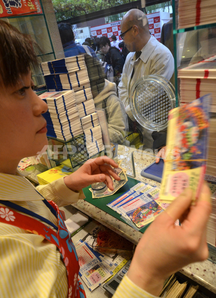 ニュース 政治・経済 年末ジャンボ発売、1等と前後賞で6億円 2012年11月26日 12:13 発信地:東京 [ アジア・オセアニア 東京 ] このニュースをシェア ‹ › ❮ 4/8 ❯ 1等と前後賞を合わせて6億円が当たる「年末ジャンボ宝くじ」が26日、全国で一斉に発売された。写真は都内の宝くじ売り場で、宝くじの準備をする従業員(2012年11月26日撮影)。(c)AFP/Yoshikazu TSUNO 画像作成中 ! 【11月26日 AFP】1等と前後賞を合わせて6億円が当たる「年末ジャンボ宝くじ」が26日、全国で一斉に発売された。(c)AFP 政治・経済 一覧へ> メディア・報道関係・法人の方向け 写真・動画 購入のお問合せ>