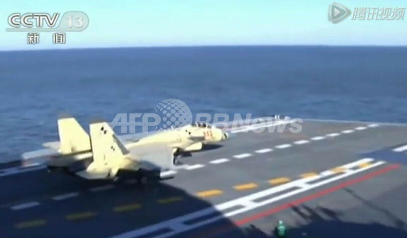 【11月26日 AFP】中国国防省は25日、同国海軍初の空母「遼寧(Liaoning)」での艦載機「殲15(J-15)」の発着艦試験にこのほど成功したと発表した。
