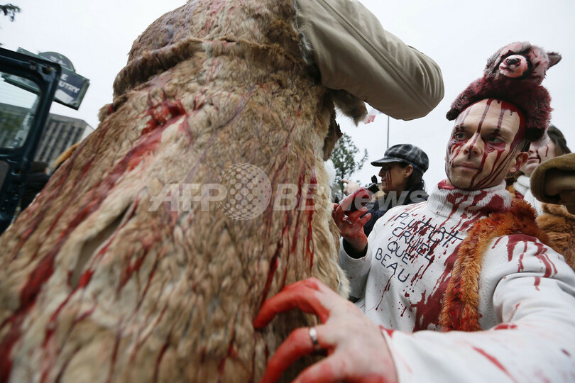 ニュース 環境・科学 毛皮に反対、仏2都市で抗議活動 2012年11月27日 13:07 発信地:パリ/フランス [ ヨーロッパ フランス ] このニュースをシェア ‹ › ❮ 7/9 ❯ フランスの首都パリ(Paris)と南部マルセイユ(Marseille)で24日、毛皮の使用に反対する抗議活動が行われた。写真はパリで、血のりまみれのアライグマのぬいぐるみを頭に乗せた参加者(左)と「美しいというより残酷」と書かれた上着を着用した男性(2012年11月24日撮影)。(c)AFP/KENZO TRIBOUILLARD 画像作成中 ! 【11月27日 AFP】フランスの首都パリ(Paris)と南部マルセイユ(Marseille)で24日、毛皮の使用に反対する抗議活動が行われた。中には血のりを体に施した参加者の姿も見られた。(c)AFP 環境・科学 一覧へ> メディア・報道関係・法人の方向け 写真・動画 購入のお問合せ>