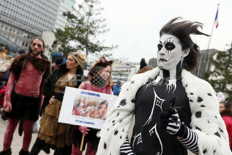 ニュース 環境・科学 毛皮に反対、仏2都市で抗議活動 2012年11月27日 13:07 発信地:パリ/フランス [ ヨーロッパ フランス ] このニュースをシェア ‹ › ❮ 6/9 ❯ フランスの首都パリ(Paris)と南部マルセイユ(Marseille)で24日、毛皮の使用に反対する抗議活動が行われた。写真はパリでの抗議活動に仮装して参加した人々(2012年11月24日撮影)。(c)AFP/KENZO TRIBOUILLARD 画像作成中 ! 【11月27日 AFP】フランスの首都パリ(Paris)と南部マルセイユ(Marseille)で24日、毛皮の使用に反対する抗議活動が行われた。中には血のりを体に施した参加者の姿も見られた。(c)AFP 環境・科学 一覧へ> メディア・報道関係・法人の方向け 写真・動画 購入のお問合せ>