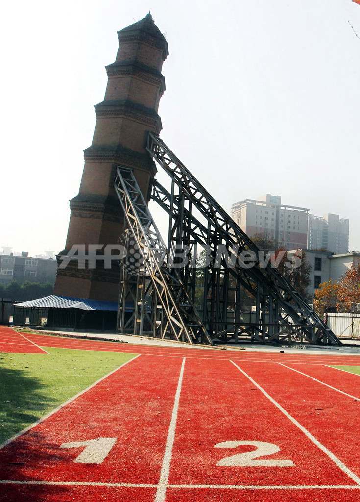 【11月30日 AFP】中国・陝西(Shaanxi)省西安(Xian)の中学校の校庭にある明代(1368~1644)の仏塔が昨年以降、大きく傾き話題となっている。イタリアの観光名所「ピサの斜塔(Leaning Tower of Pisa)」にたとえる声もあるが、学校側は塔が倒壊するのではと懸念を募らせている。