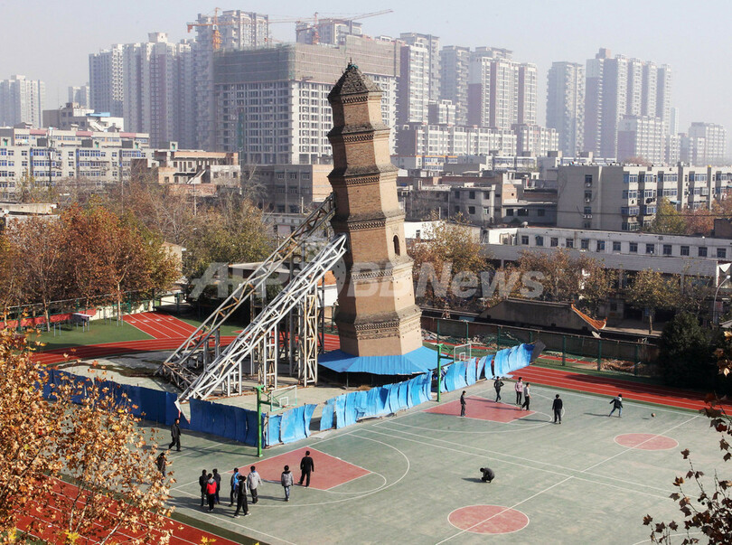 【11月30日 AFP】中国・陝西(Shaanxi)省西安(Xian)の中学校の校庭にある明代(1368~1644)の仏塔が昨年以降、大きく傾き話題となっている。イタリアの観光名所「ピサの斜塔(Leaning Tower of Pisa)」にたとえる声もあるが、学校側は塔が倒壊するのではと懸念を募らせている。