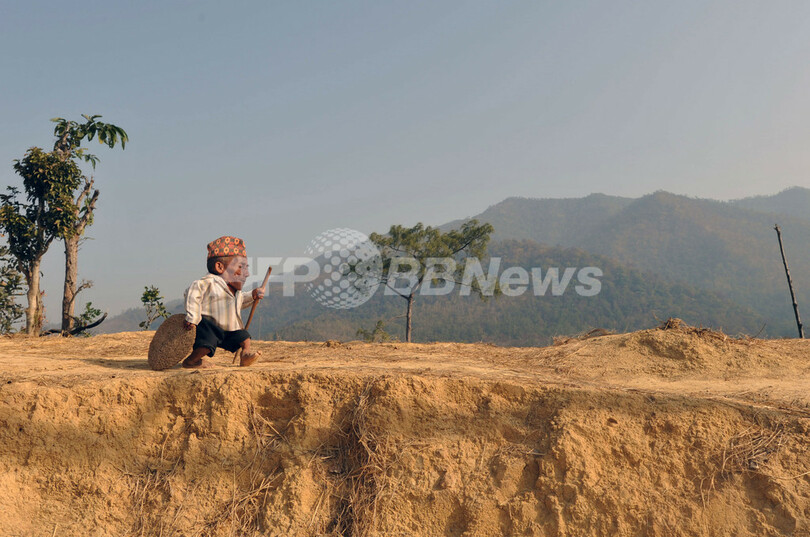ダンギさんは今年、世界で一番背の低い男性として、ギネス世界記録(Guinness World Records)に認定された(2012年2月21日撮影)。(c)AFP/Prakash MATHEMA
