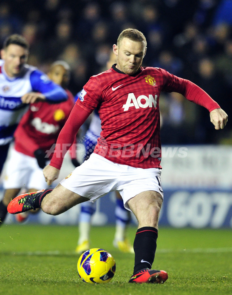 PKでチームの2得点目を決めるマンチェスター・ユナイテッドのウェイン・ルーニー(Wayne Rooney、2012年12月1日撮影)。(c)AFP/GLYN KIRK