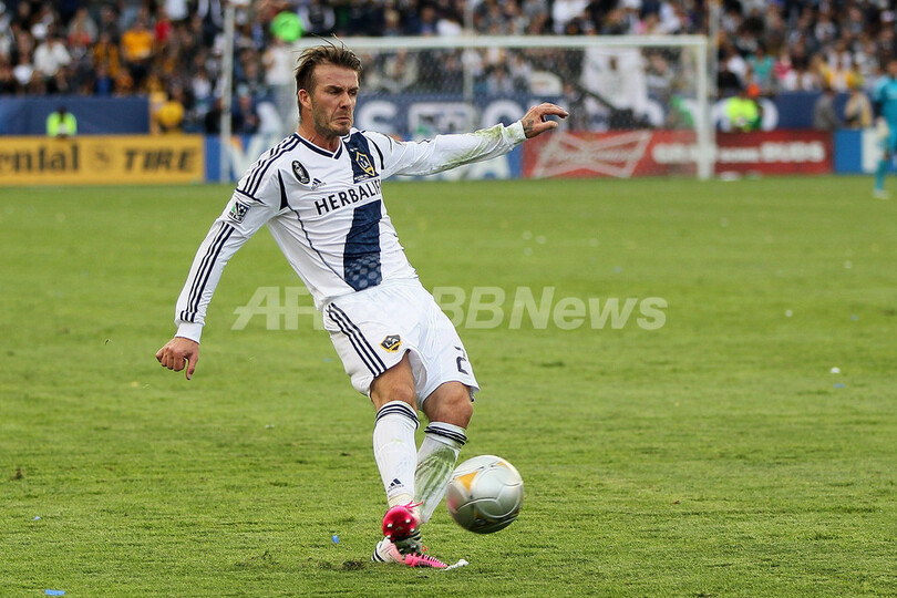 FKを蹴るロサンゼルス・ギャラクシーのデビッド・ベッカム(David Beckham、2012年12月1日撮影)。(c)AFP/Getty Images/Victor Decolongon