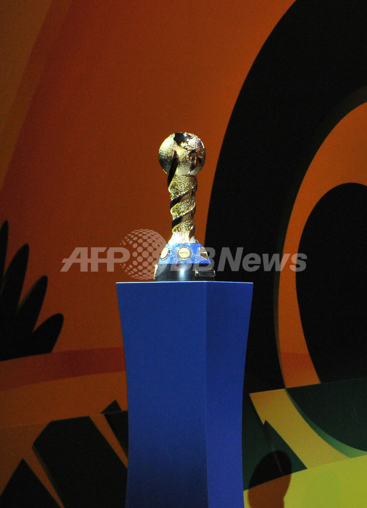 組み合わせ抽選会で展示された大会の優勝トロフィー(2012年12月1日撮影)。(c)AFP/YASUYOSHI CHIBA