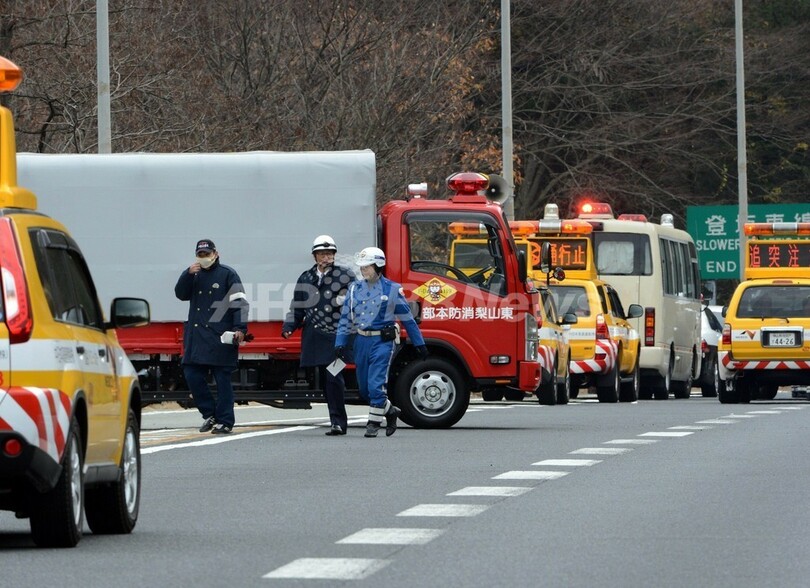【12月2日 AFP】山梨県で2日午前8時ごろ、中央自動車道上り線の笹子トンネル(Sasago Tunnel)内でコンクリートの天井が崩落する事故があり、トンネル内を走行していた車2台が下敷きとなり、少なくとも7人が内部に取り残されているとみられる。