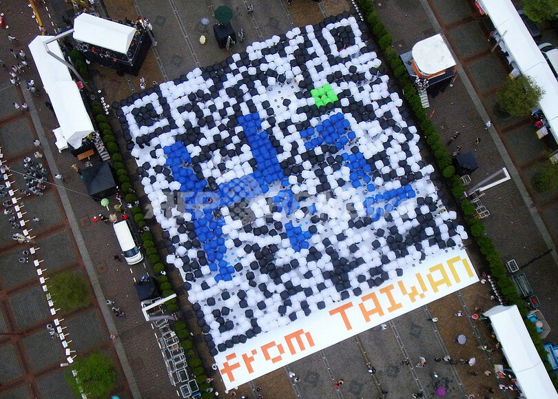 イベントを主宰したNPO団体「温世仁文教基金会(Sayling Wen Cultural & Educational Foundation)」は、AFPの取材に「台湾をPRする方法は他にもあるだろうが、敢えてQRコードを選んだ」と説明。携帯電話で写真に撮るだけで簡単に同団体のウェブサイトにアクセスでき、台湾で開かれる催事の最新情報を知ることが可能だと利便性をアピールした。(c)AFP
