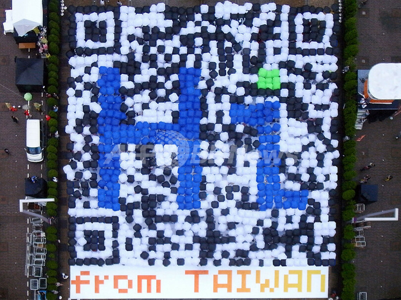イベントを主宰したNPO団体「温世仁文教基金会(Sayling Wen Cultural & Educational Foundation)」は、AFPの取材に「台湾をPRする方法は他にもあるだろうが、敢えてQRコードを選んだ」と説明。携帯電話で写真に撮るだけで簡単に同団体のウェブサイトにアクセスでき、台湾で開かれる催事の最新情報を知ることが可能だと利便性をアピールした。(c)AFP